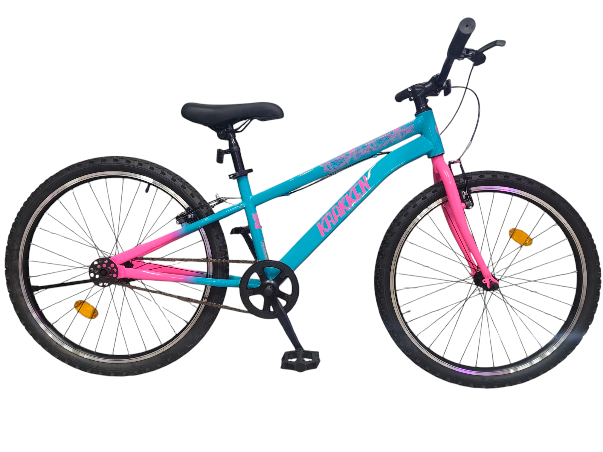 La bicicleta Hera Aro 24 combina un diseño moderno y juvenil con la sencillez de una conducción sin complicaciones. Su atractivo color celeste con rosado resalta a primera vista, ideal para quienes buscan estilo y comodidad en cada pedaleo.