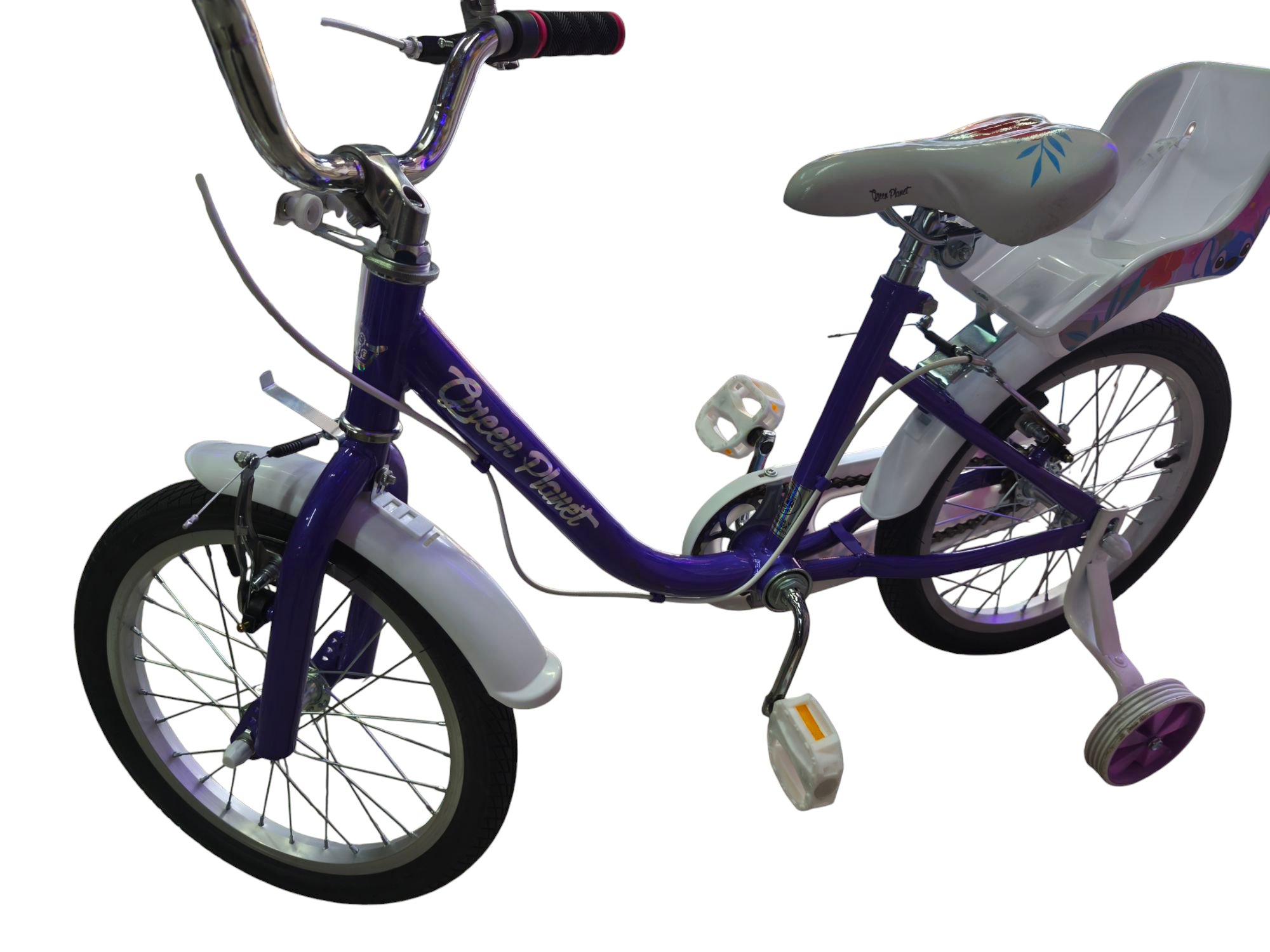 Cuenta con portamuñecas (ruedas de apoyo) desmontables, ideales para acompañar el proceso de aprendizaje y dar mayor estabilidad en cada pedaleo. Incorpora además un canasto delantero, perfecto para llevar juguetes, accesorios o lo que la imaginación quiera transportar 🌸🧸.
