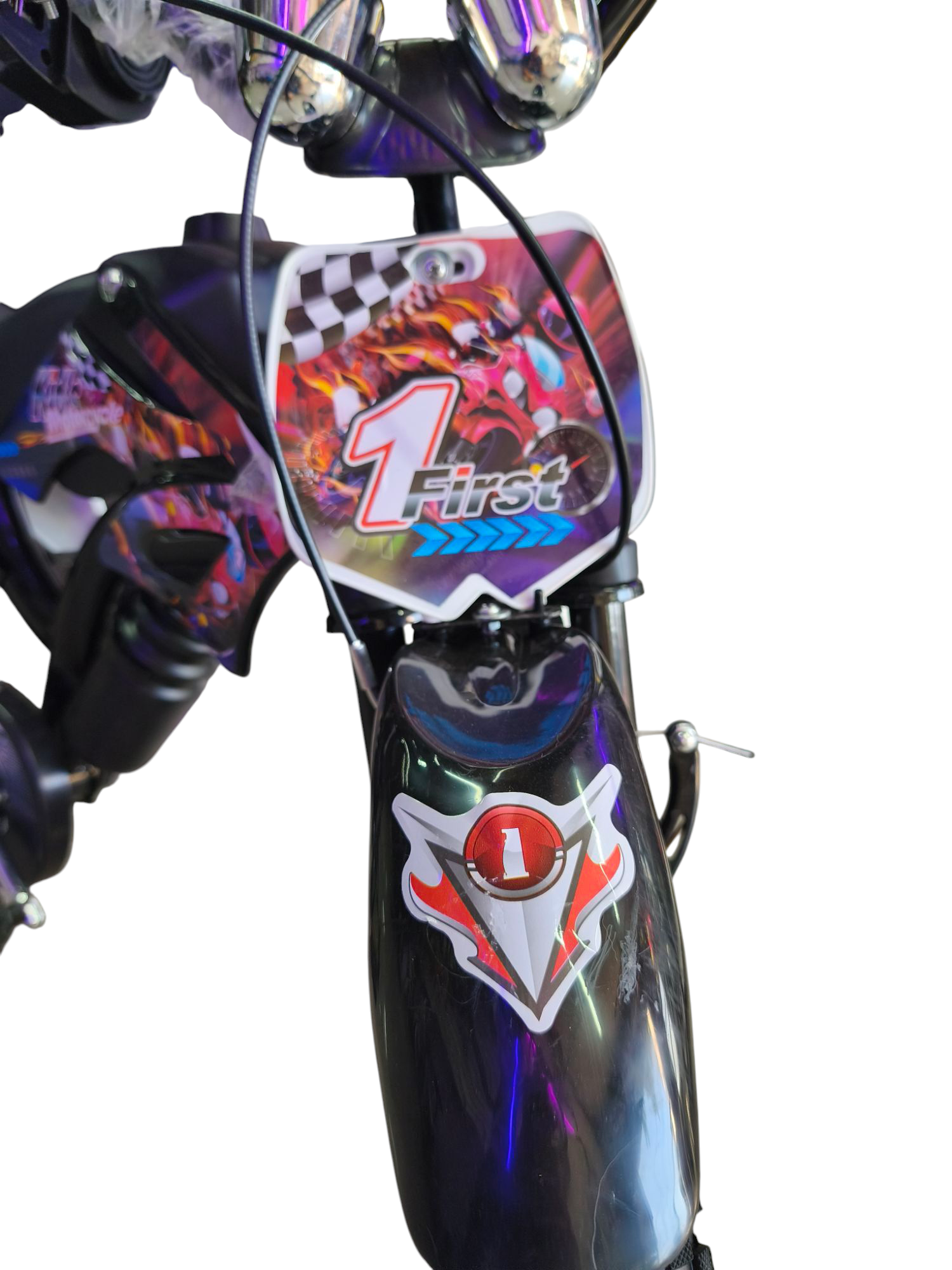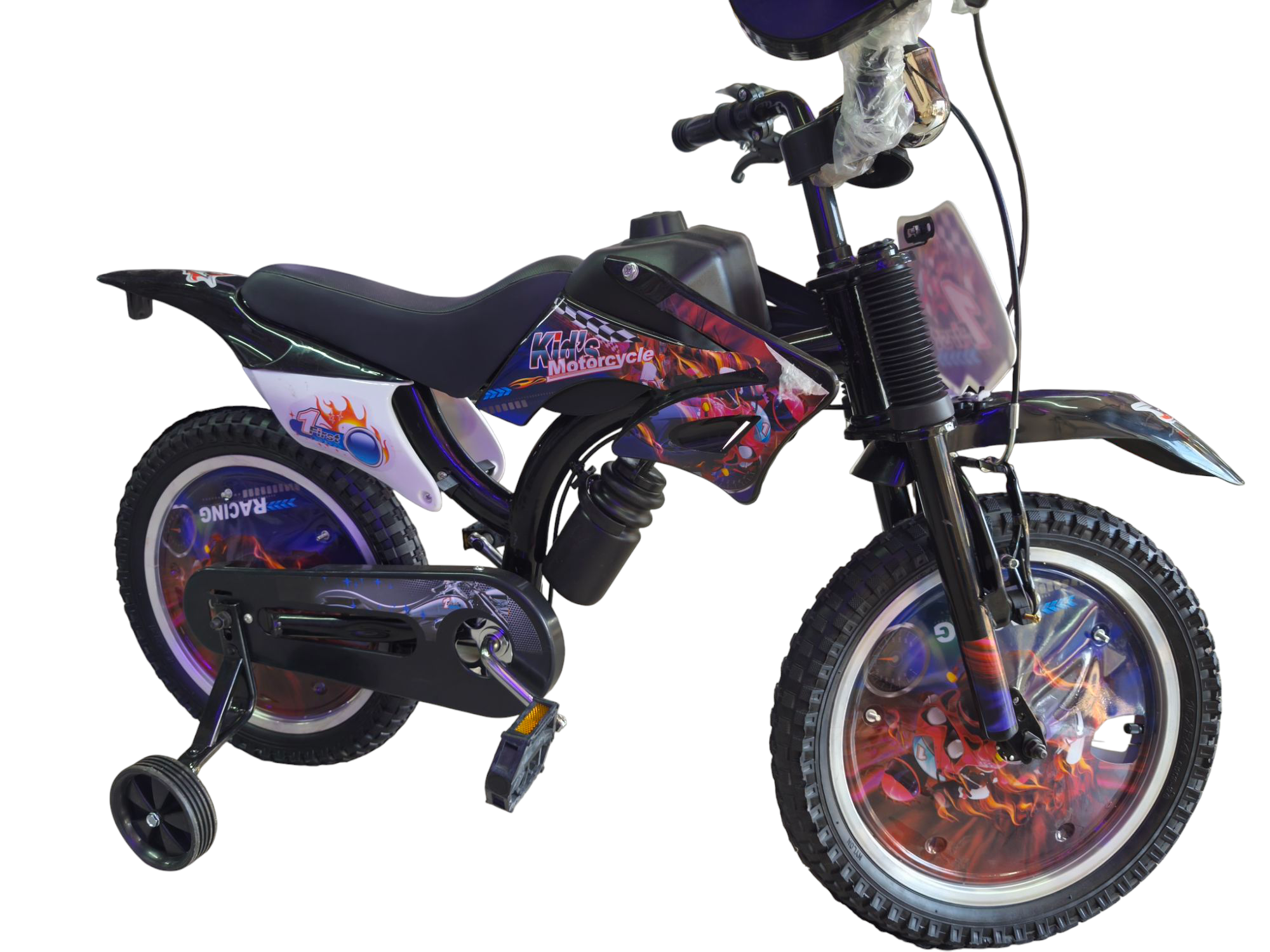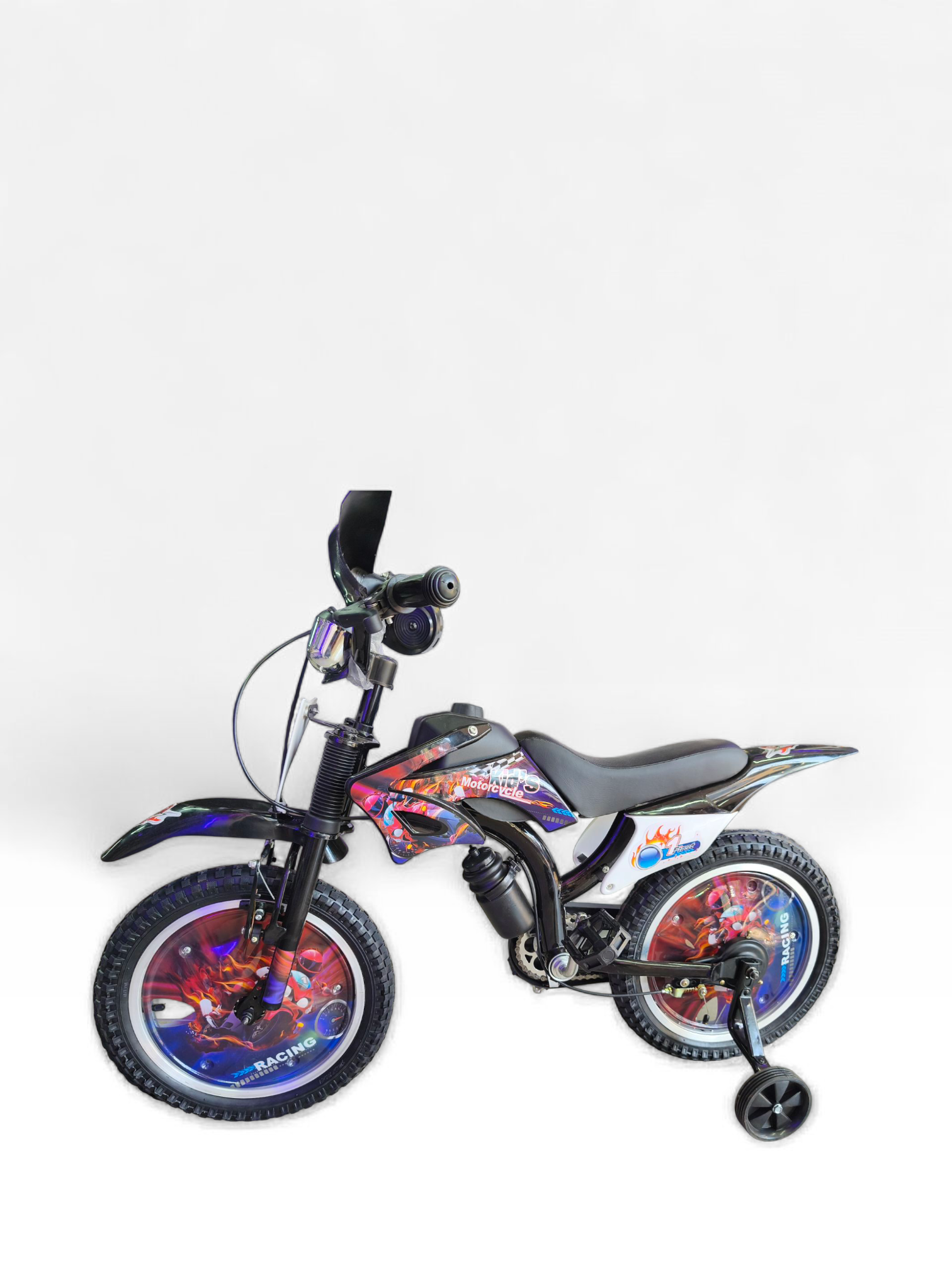 La Bicicleta Aro 16 Tipo Moto es perfecta para los pequeños que sueñan con manejar su propia motocicleta. Su diseño deportivo incluye carenados estilo moto, guardabarros anchos y tapas decorativas en las ruedas que le dan una apariencia realmente llamativa.